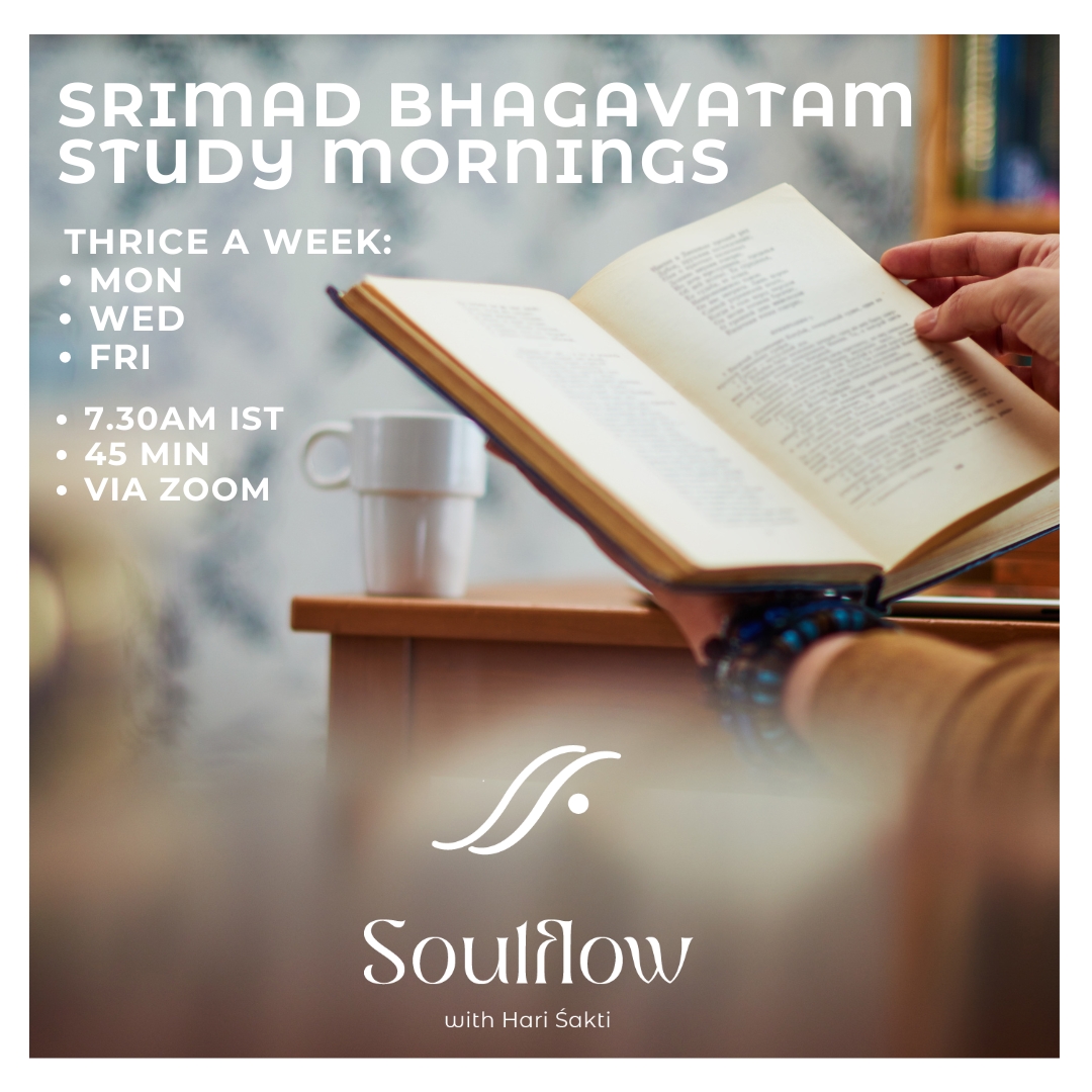 Join our Srimad Bhagavatam Morning Sessions – a free offering open to all sincere practitioners who wish to nourish their spiritual journey through the study of this timeless scripture.
